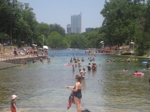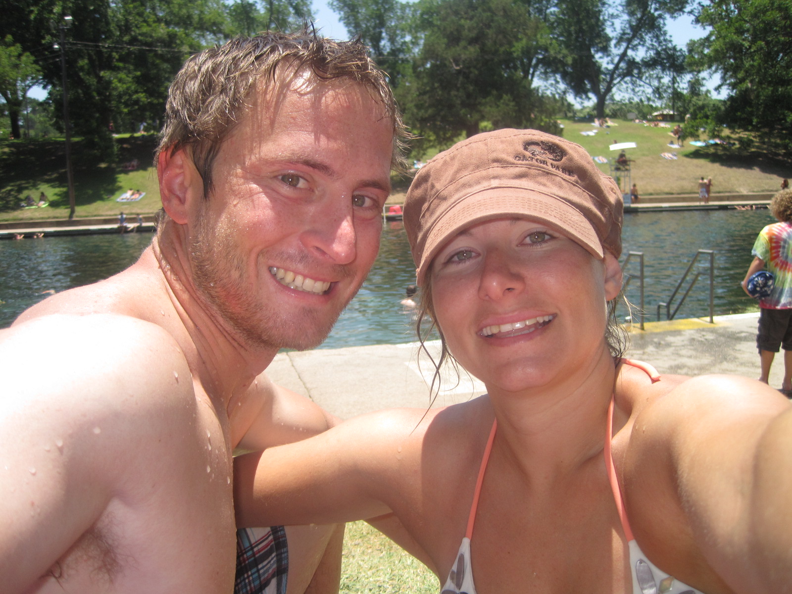 We went to the beach the next day and soaked up some sun before heading to Austin. We loved Austin! It is our favorite city thus far. It was a big city with a small city feel. It was really clean and had a great music scene. It was hot, but not humid which was good. We met up with J’s cousin Todd and grabbed a nice cold one and watched the Mav’s beat the Heat. This made me happy. Now if only we could beat the heat (110 F) Come on Texas cool off already! We stayed the night in a hotel, HELLO AC! The next day we went to a really cool natural spring pool located right outside the city. Crystal clear water at a mild 68 F. We didn’t want to leave….