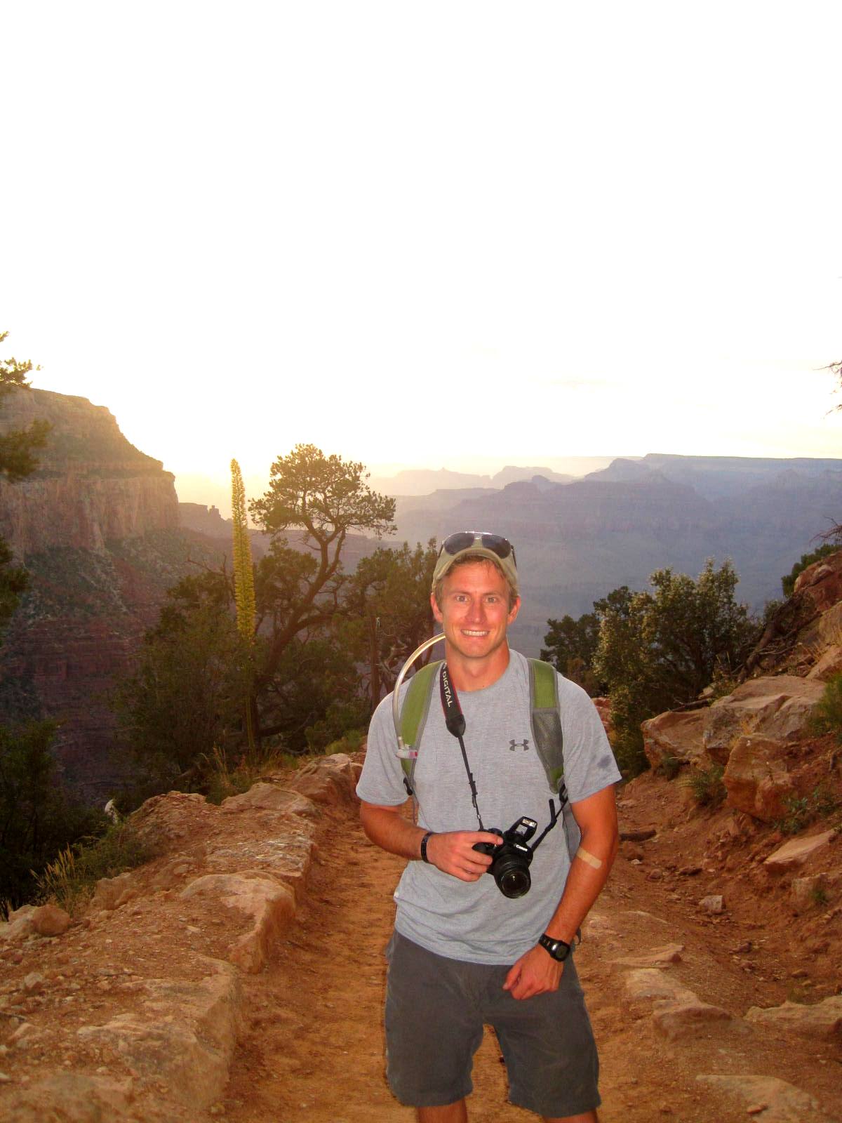 After making it just short of the Colorado River we started our ascent back up. We made it to the 3 mile rest stop and filled up our water bladders. While we were filling them up we met some young guys who had camped down at the bottom of the canyon and were hiking back up. One of the guys was having a hard time hiking and was suffering from slight heat exhaustion. They were discussing their game plan on getting him and his back pack up the rest of the trail. Having him rescued by a helicopter would cost upward of 3k, which was not an option. So I volunteered J :). J agreed to hike the remaining trail with this stranger’s backpack. He loves a good workout so I thought it was a good idea. I carried mine and J’s pack up. They were just day packs, so it wasn’t bad. We were young and able and it probably saved one of them two trips. We were happy to help. Heat exhaustion inside the canyon is no joke. More people die of that then anything else.