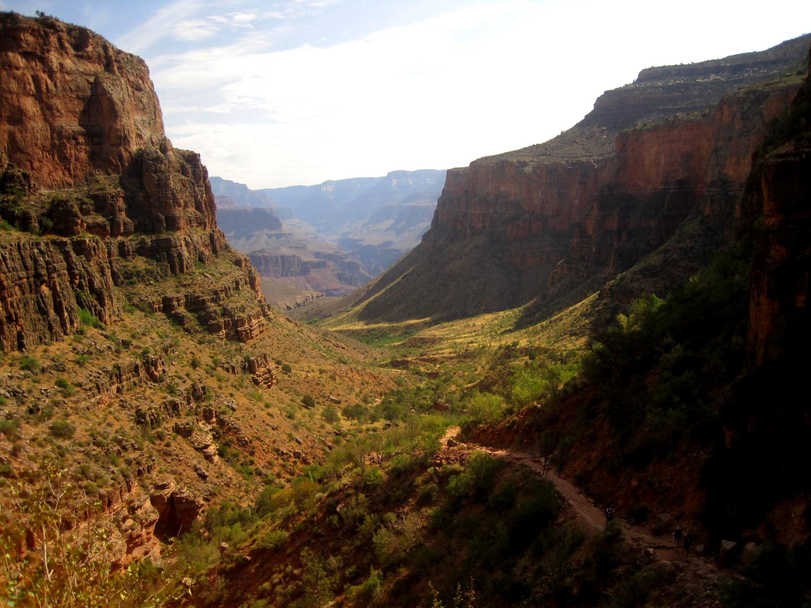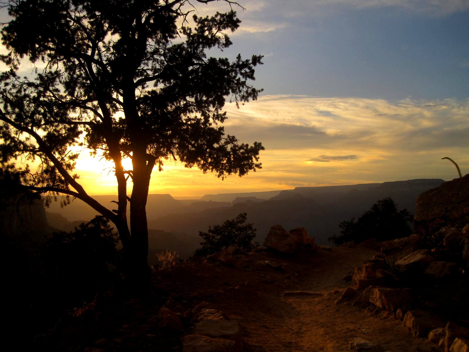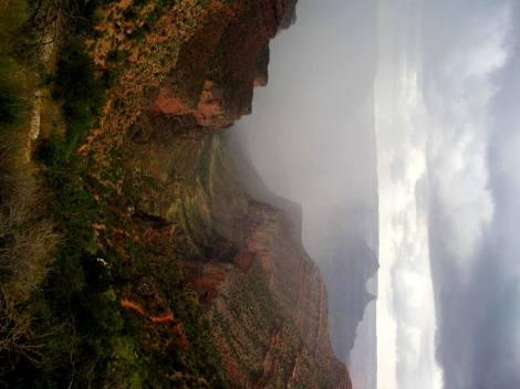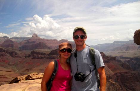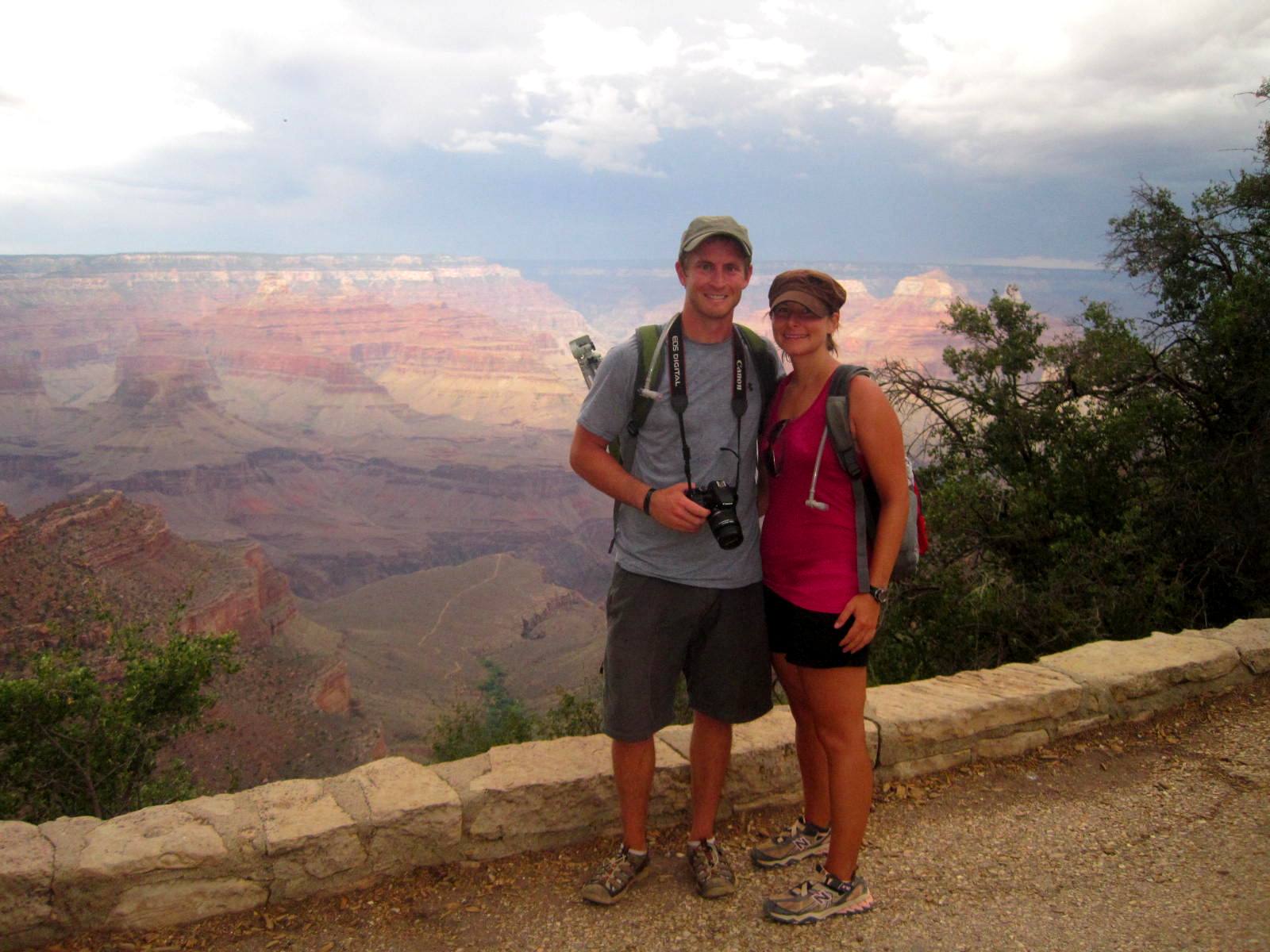 She Says: To be honest my first impression of the Grand Canyon wasn’t as Grand as I thought it would be. This was partly due to the fact that I was in awe with Bryce and Zion and expected a wow factor when we arrived. John was deeply troubled by this reaction of mine and seemed almost offended. Don’t get me wrong, I thought it was beautiful, but I had seen so much beautiful scenery by the time we arrived and I had anticipated the GC for so long that my first impression seemed somewhat anticlimactic. However, this all changed upon on our hike down into the canyon.