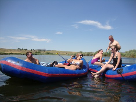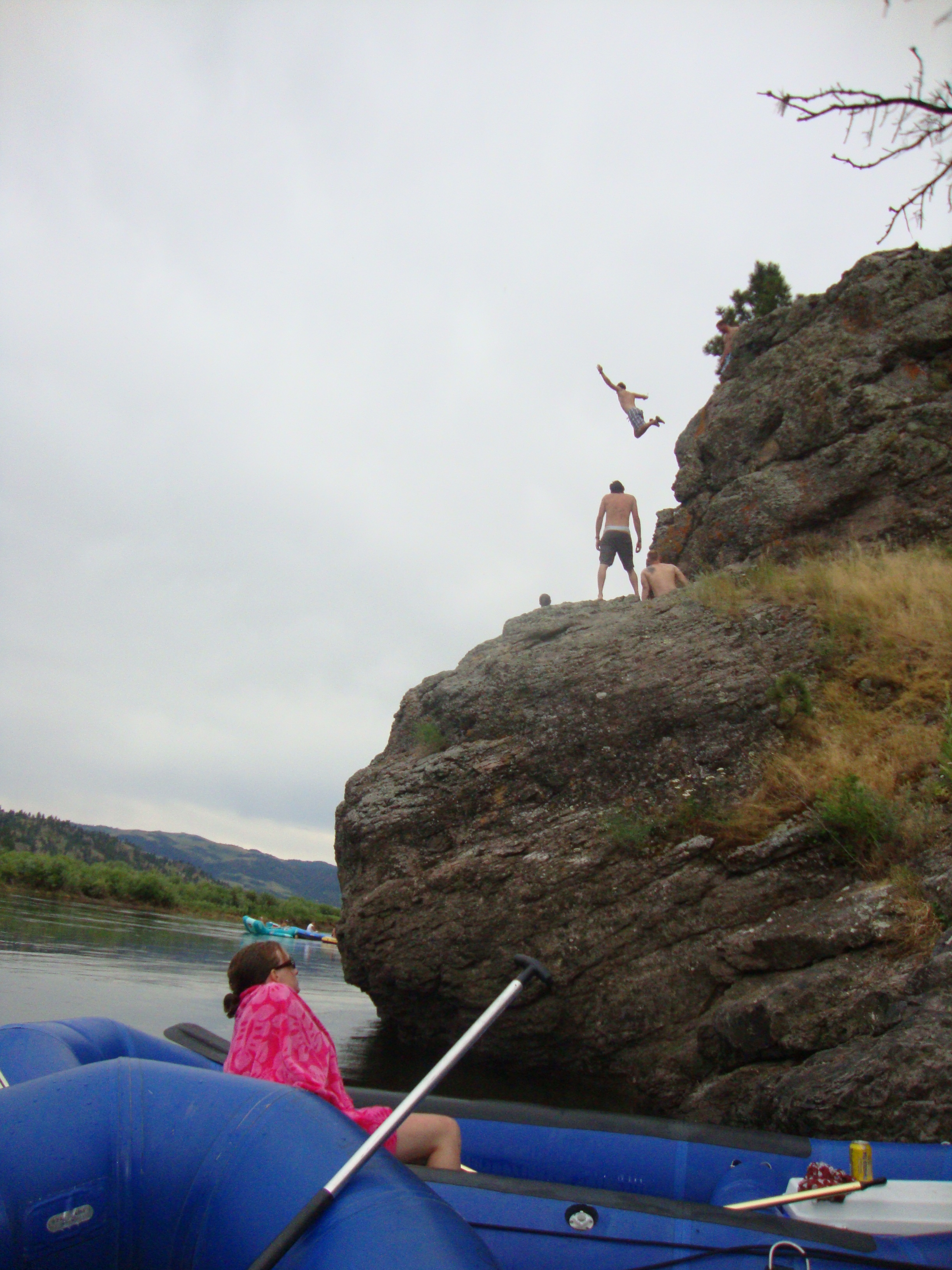 After three days exploring the park we made our way over the continental divide and arrived in Great Falls, MT. This would be a horrible place to live if it wasn’t for one thing….Michael Tom. Mike showed us everything Great Falls had to offer, which wasn’t much. My favorite part? The mermaid swimming in a tank behind the bar at Sip & Dip. But the best part about hanging with Mike was definitely rafting. We had a blast meeting some random people who were enjoying their drinks as much as we were along the river. Luckily they had a patch kit that saved us from constantly pumping air into the raft and sinking. We found a 35 ft. cliff at some point and, of course, had to jump off it. Mike and I had the genius idea of using his waterproof camera to get video but I don’t think anyone is ever going to see it. I was tasked with holding the camera for my jump and I actually made it the first time but, like the cameraman I am, didn’t feel like the video was good enough. I took the camera up again but this time it was ripped from my hand as soon as I hit the water….sorry Mike. Someone will enjoy that video someday. 😦