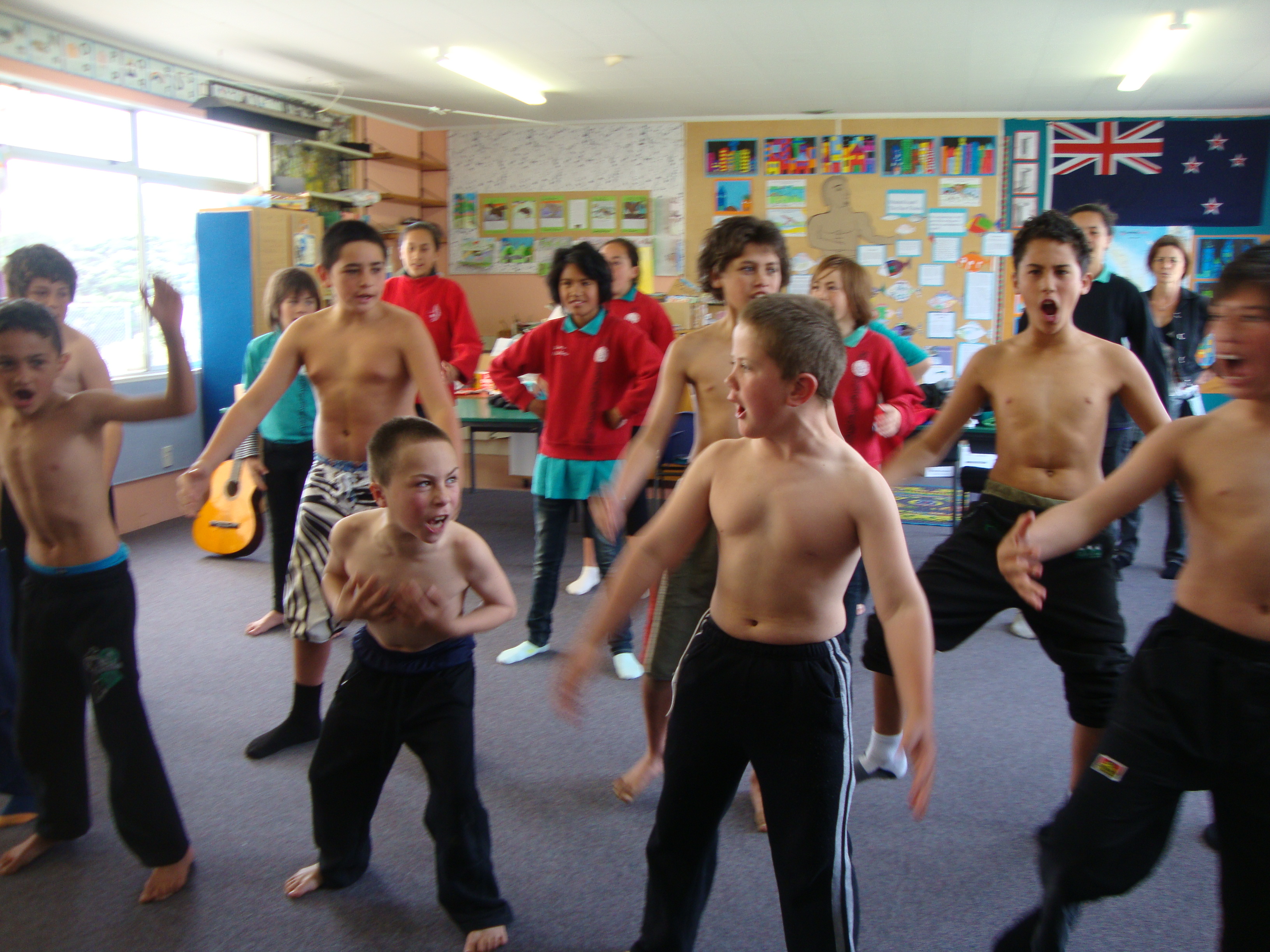 Our second day there, Avril took us to the parochial Maori school where she works and arranged for the kids to perform their hakas, traditional Maori war dances, for us. Hundreds of years ago, tribes would would perform their haka to intimidate the other side into surrendering before going in battle. Nowadays they’re done for tourists and before rugby matches. So it was serious business for the children to do theirs for us. Some of the boys were a little embarassed to take off their shirts in front of their guests but the teachers assured them hakas should never be performed with them on. Like I said, serious business. Soon enough, one of the boys was yelling in Maori prompting the rest of the school to do the same. In sync, they all began yelling, beating their chests, stomping their feet, slapping their arms, sticking out their tongues and bulging their eyes. I quickly understood how this could’ve be intimidating. (Check it out – http://www.youtube.com/watch?v=-zo0eKpkJok)