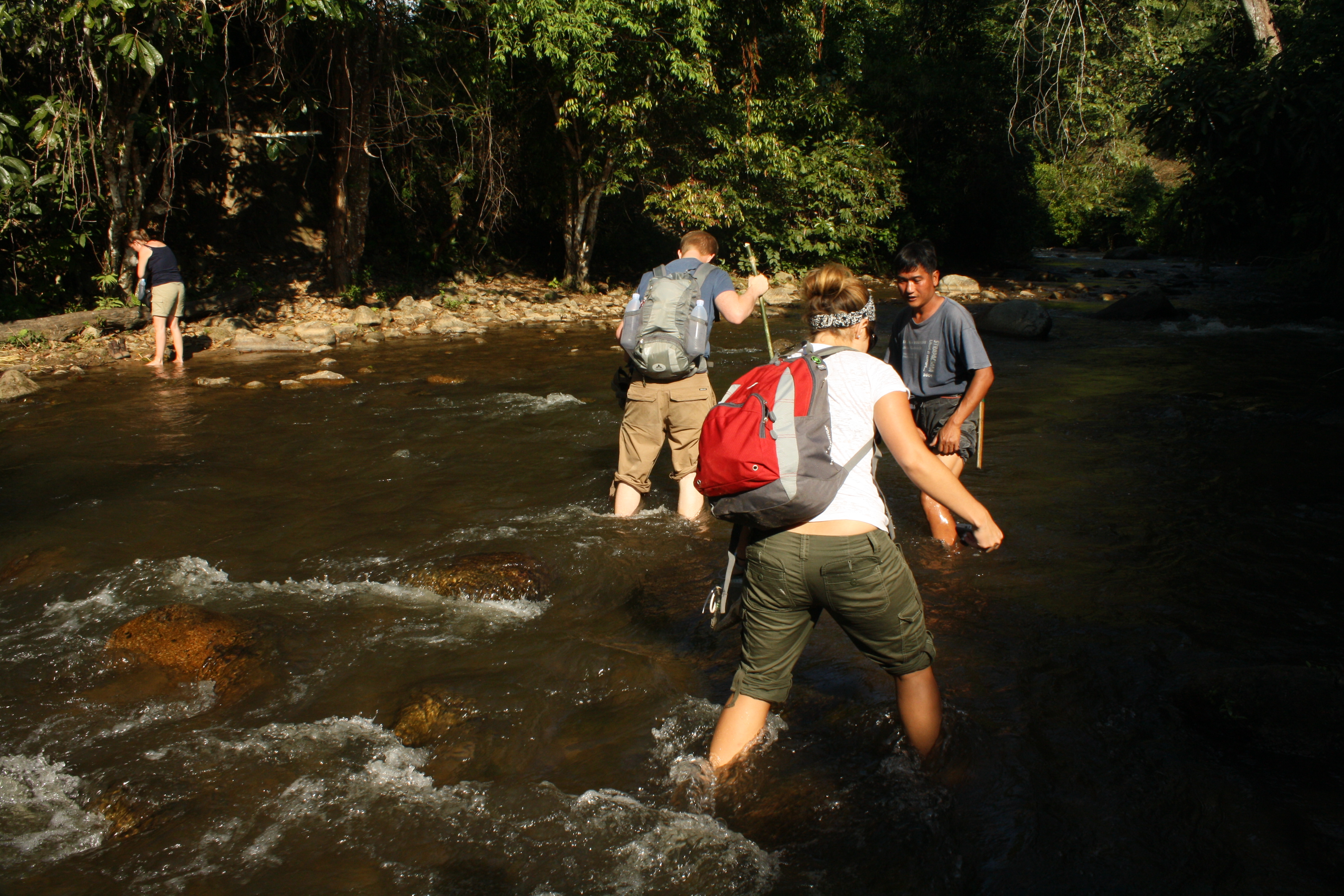 As usual, it’s the people you meet that are often the most interesting part of a place. This was definitely true in Pai and the Lahu village.Β It was a great day. Β I am so glad J and I decided to do the trek. Β The next day trekking was longer but other than the river crossings didn’t seem as difficult. We finally made it back to Pai in one piece in the evening. I got a massage, as usual, to ease my aching muscles and then we went out for our traditional post-hike drink.