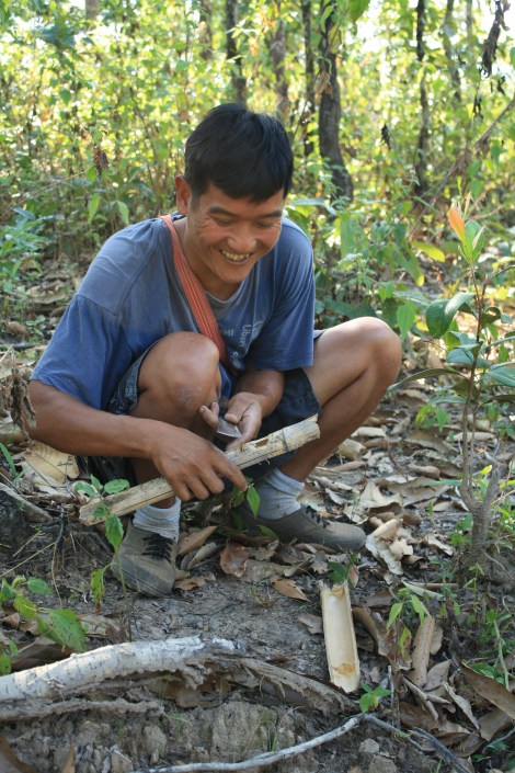 Our survival lesson for the day. Bamboo lighter.