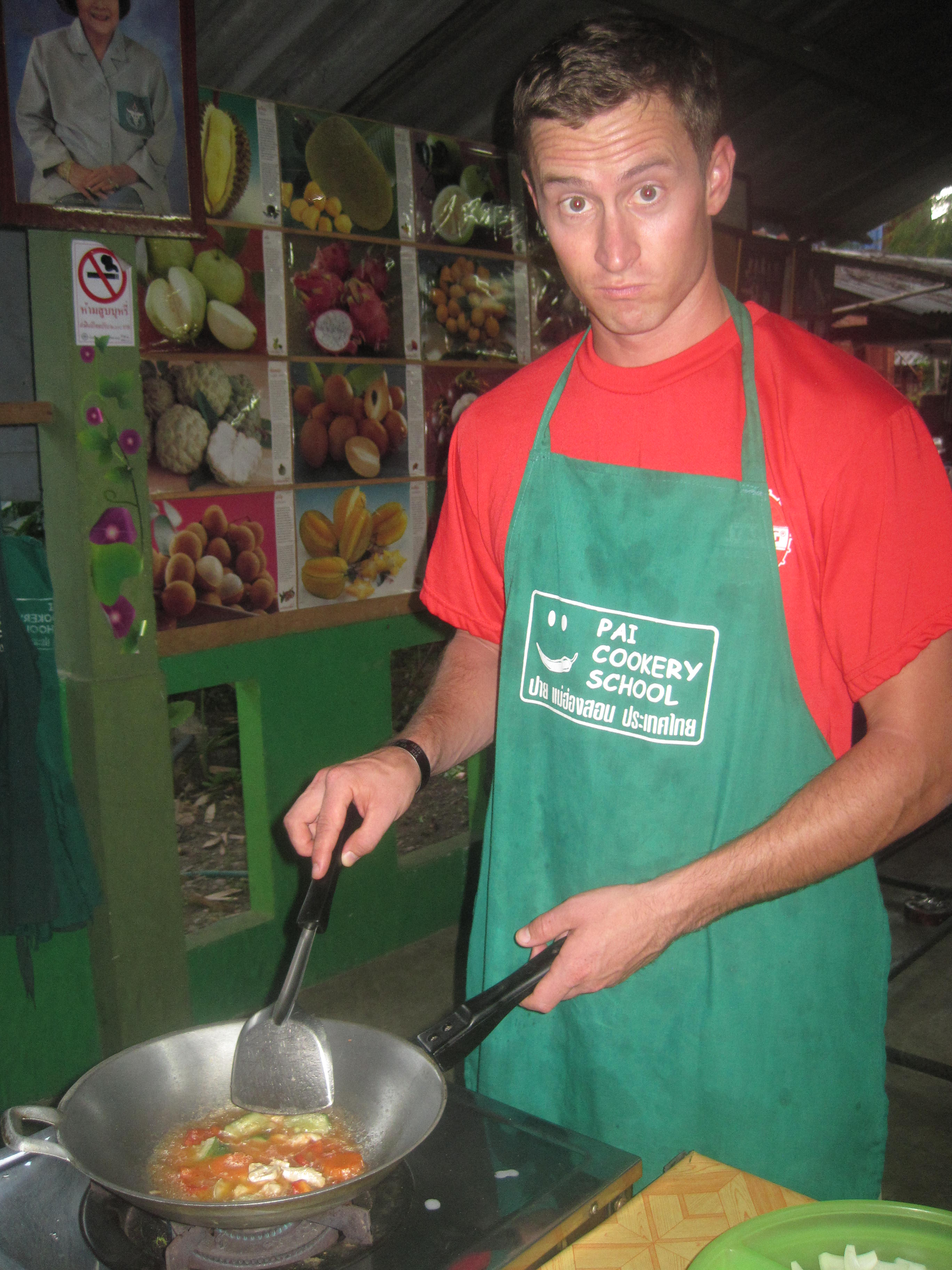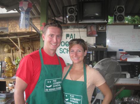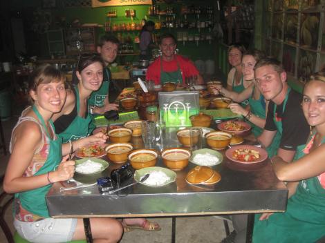 The cooking class was a lot of fun and informative. Β We now know how to make curry, mango and sticky rice (YUM!), and pad thai to name a few. Β One of the best parts was the trip into the town market. Β Here our teacher taught us all about the food and how to tell if its good or ripe to buy and also what a few unknown foods were. (There were a lot of foods that we had no clue what they were).
