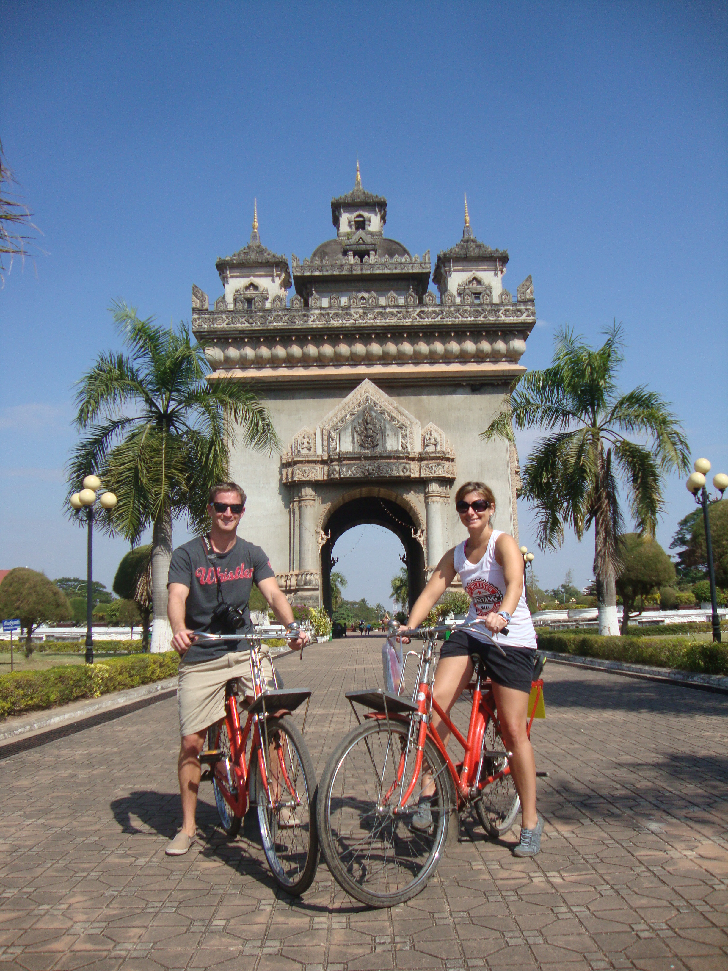 Nothing too exciting to report on Vientiane. Unfortunately, we were stranded there for 7 days waiting for our Indian visas to be processed. We definitely would’ve preferred to spend that week elsewhere. It’s a usual city with nothing particularly interesting. We spent half a day riding around on bicycles seeing the sights and the other 6.5 surfing the net in coffee shops. Other than good Americano there was no reason to stay there after our visas were finished. The evening they were completed we high-tailed it out of Vientiane to Siem Reap, Cambodia on a sleeper bus. This was probably the best bus ride we’ve had to date. It literally had bunk beds stacked on each side of it. Although we didn’t actually sleep much because of the potholes, the ride was at least more comfortable because we weren’t crammed in seats. After about 12 hours we made it to the border, went through the standard red tape and crossed into Cambodia safe and sound.