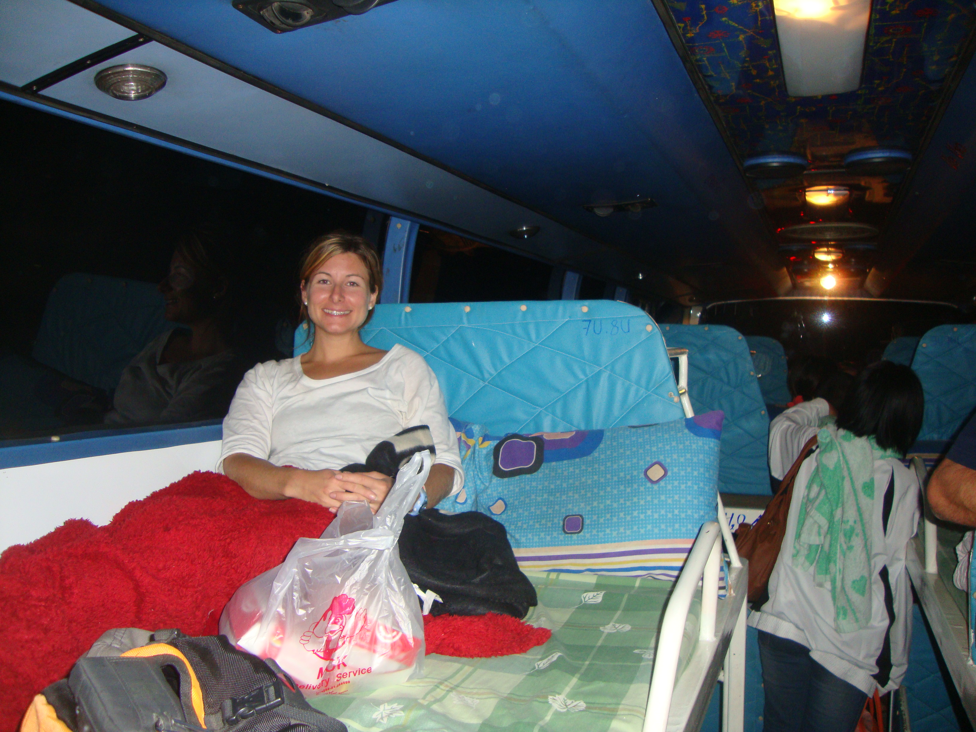 TB living the life of luxury on our sleeper bus to Cambodia. 🙂