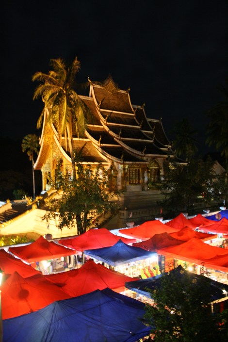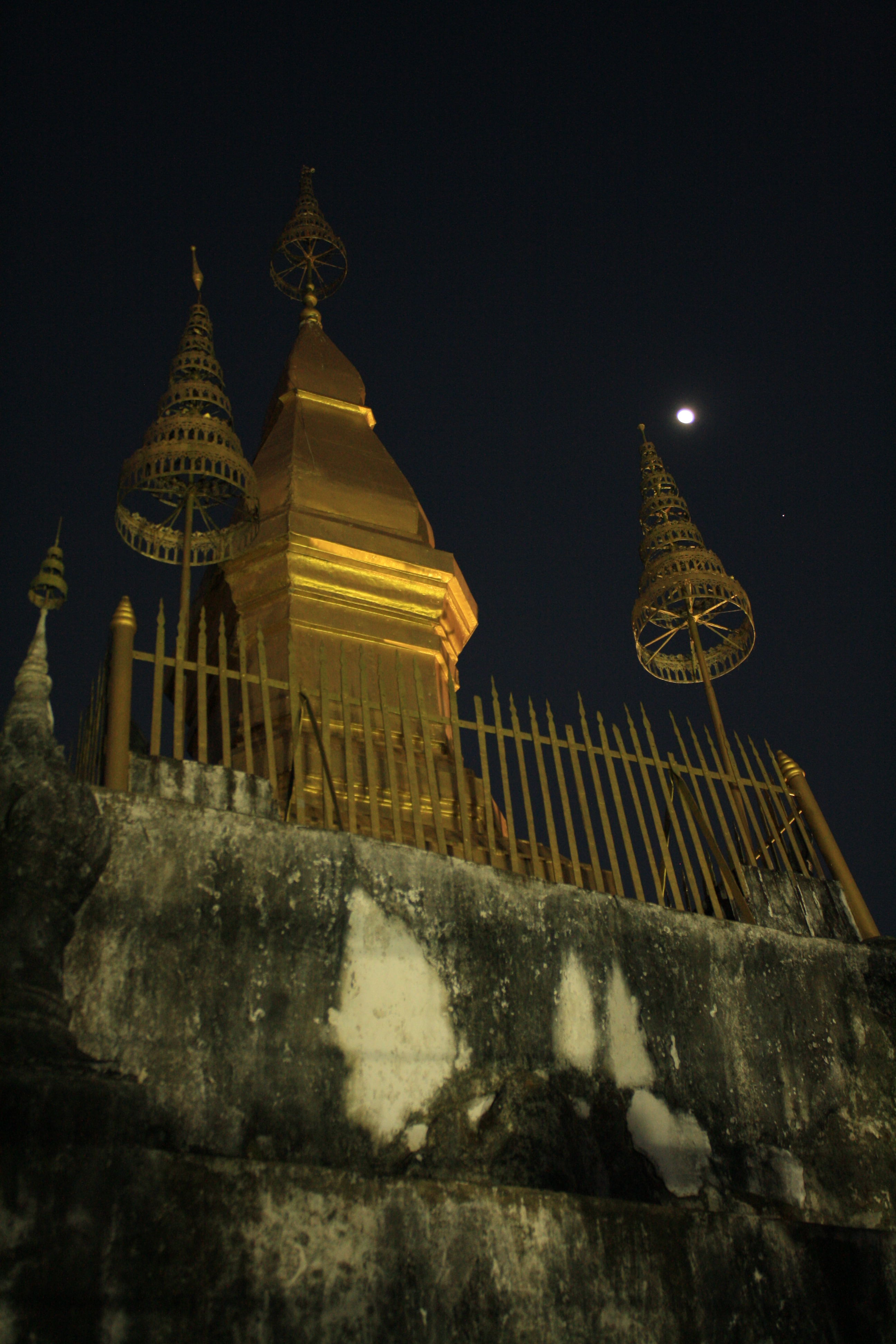 We arrived to our destination right around sunset. Luang Prabang was a nice surprise.  Since LP was once a French colony much of the town had an old colonial look to it.  There was a lot of French architecture as well as French cuisine.  The best part was the baguettes found on the side of the road everywhere and the delicious coffee!  Who knew they would have great coffee in the middle of Laos!?