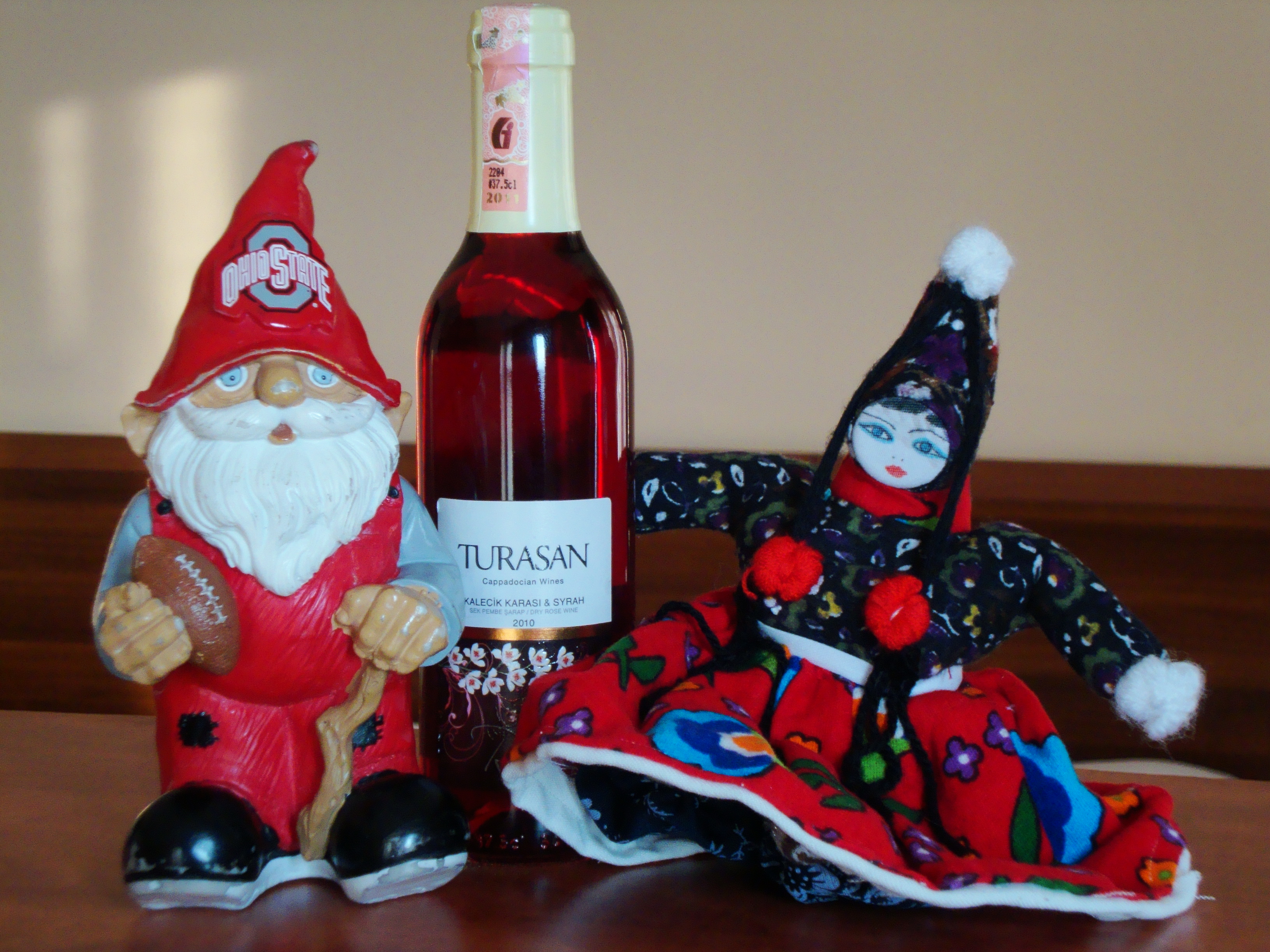 Our hotel gave me this homemade Turkish doll for my b-day. By default, she became Mullah's girlfriend. A little wine helped them along the way. 🙂