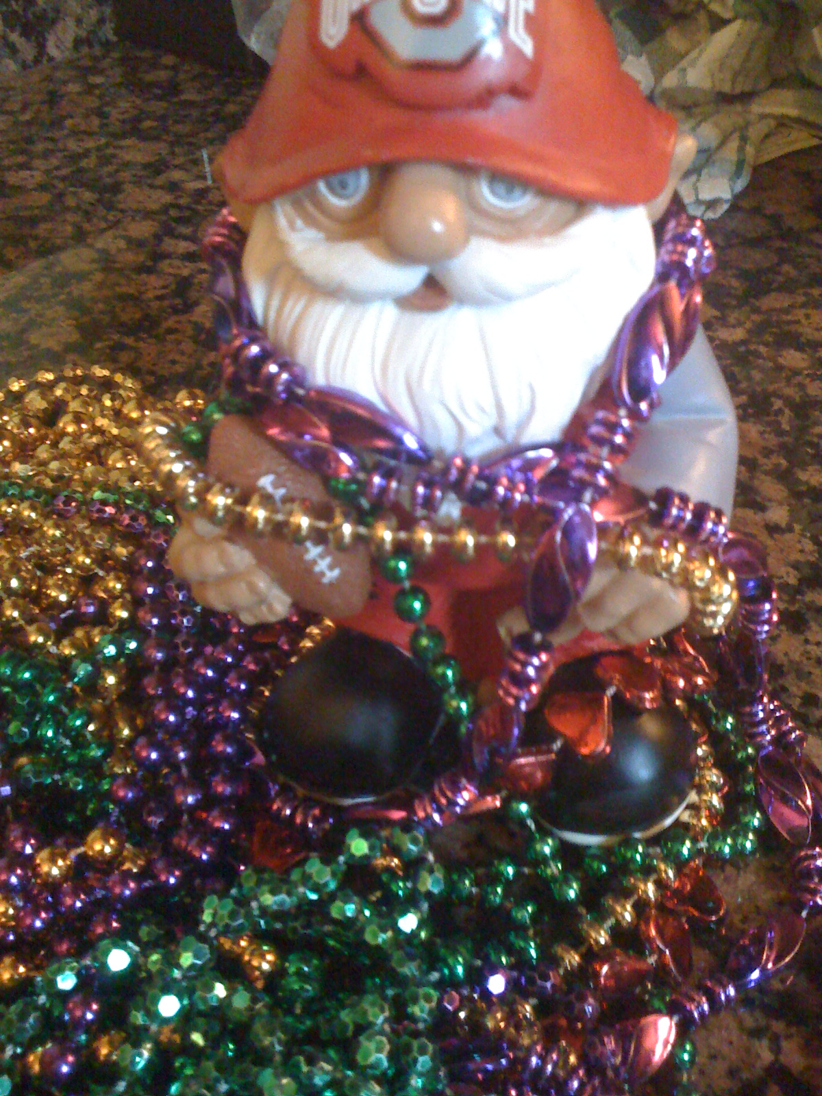 Named after Gordon Gee, president of OSU, Mullah Gee is our travel companion following us around the US and the world while partaking in all of our adventures. He’s a mischievous gnome who loves getting in trouble and picking up tall women. He’s short in stature but lives larger than life….our kind of guy. 🙂