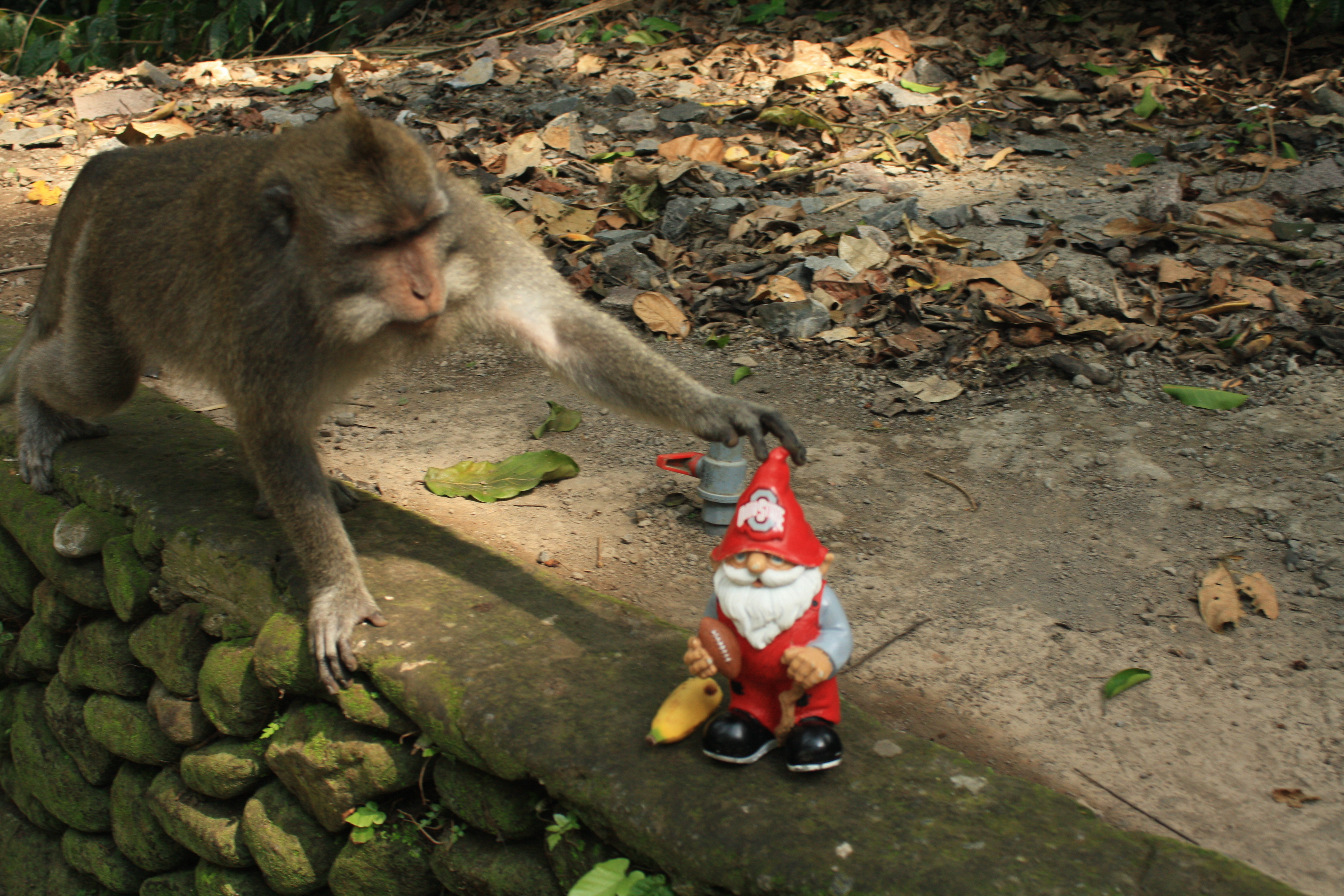 Is that a banana in your hat, or are you just happy to see me? - Monkey Forest, Bali, Indonesia